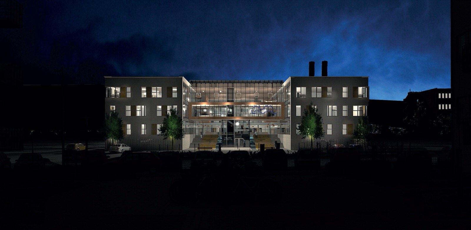 Når man som gæst bevæger sig op i bygningen ender man på ”Broen”, hvorfra der er udsigt til havnen og vandet. I indretningen er der sat fokus på minimale gåafstande for gæster og personale, hvorfor man hurtigt kan komme rundt i domicilet horisontalt og vertikalt.